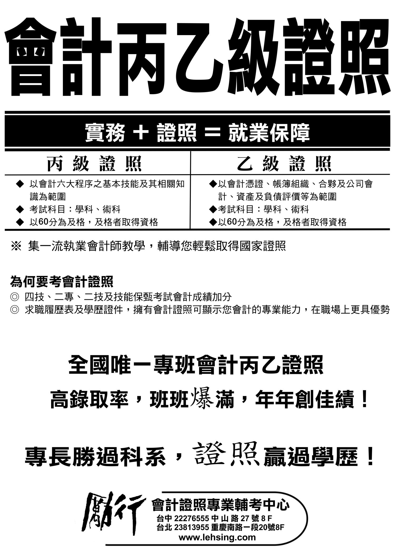 會計丙乙級證照 會計人絕不可少!!